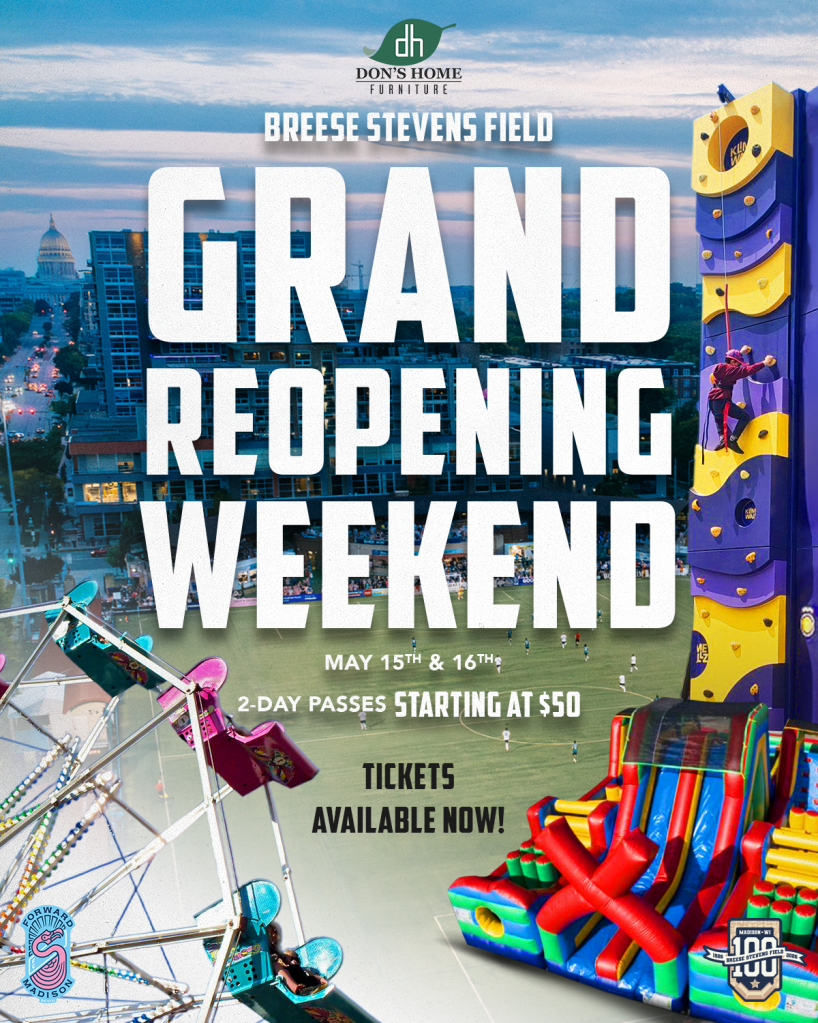 Celebrate 100 years of Breese Stevens Field and grab your two-day Don’s Home Furniture Fan Fest pass! Be a part of an unforgettable weekend featuring family activities at the Rally Madison FC preseason match and Ferris wheel rides at the Forward Madison FC home opener!