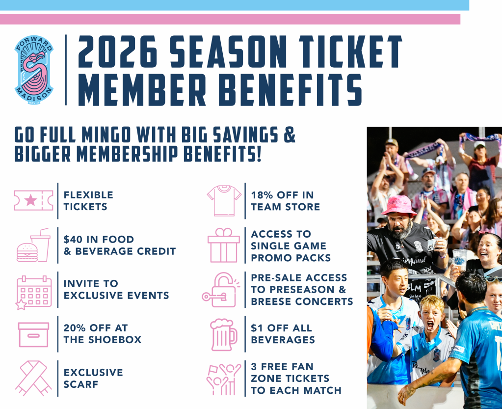 As a 2026 Forward Madison FC season ticket member, you receive…